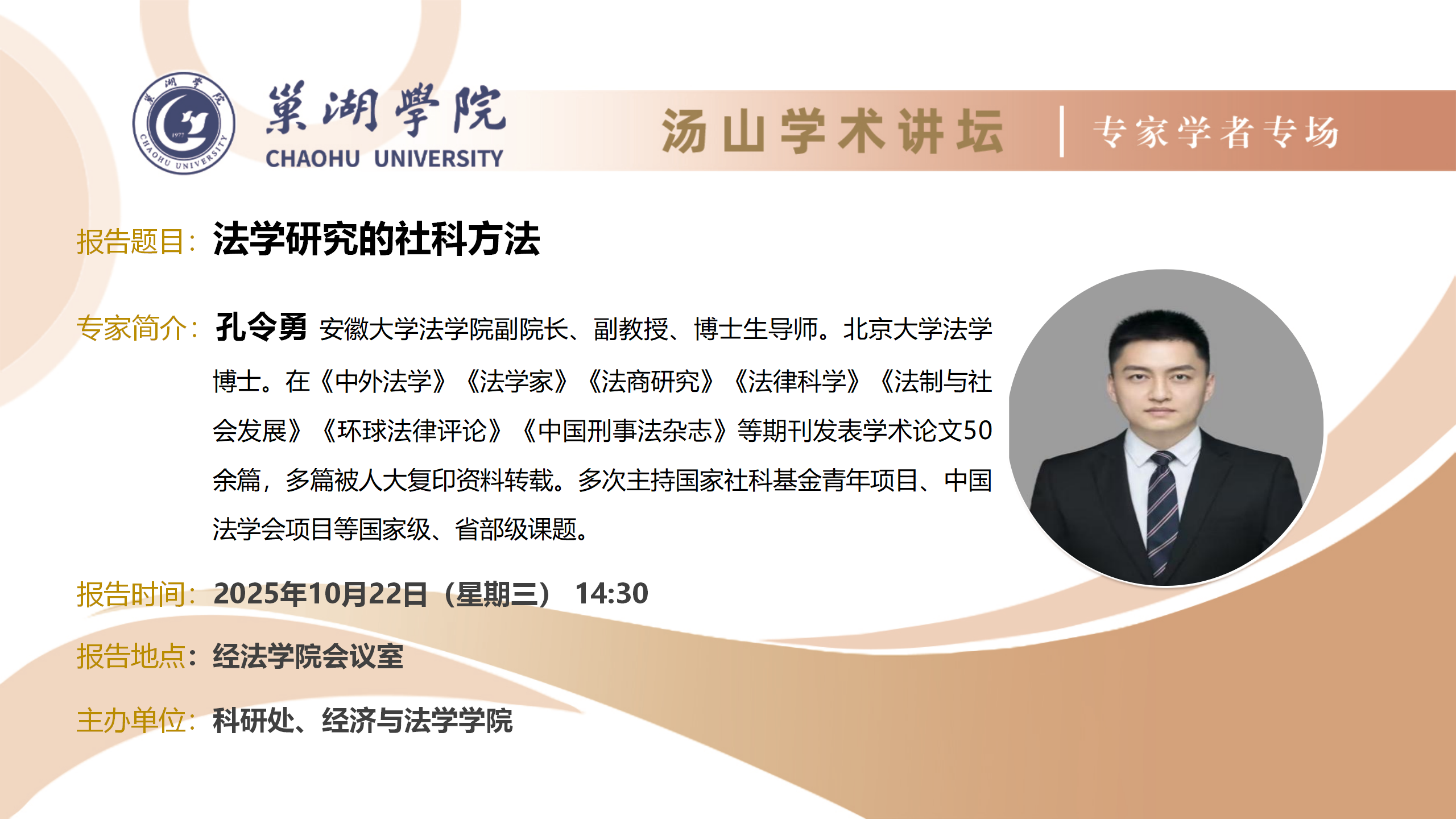 • 10月22日:安徽大學法學院副院長孔令勇副教授講座